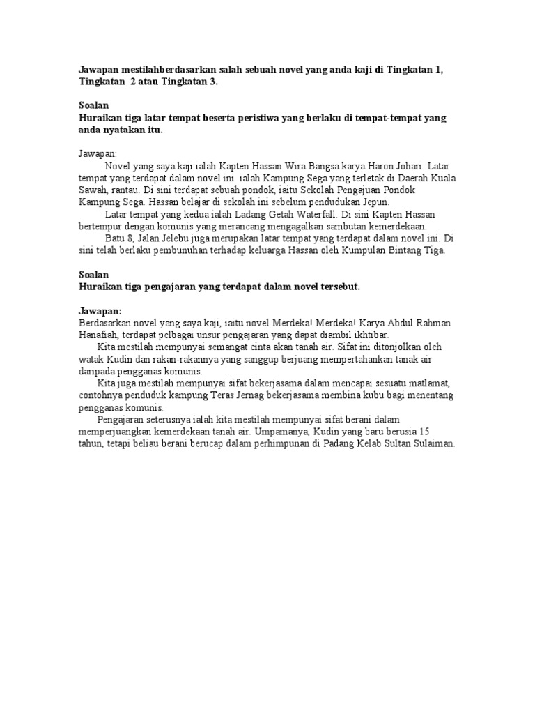 Contoh Jawapan Soalan Novel Tingkatan 4